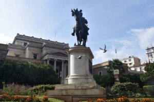 Το άγαλμα του Λάζαρου Σώχου έφιππος Κολοκοτρώνη μπροστά από τη Παλιά Βουλή στη Σταδίου (Intime News)