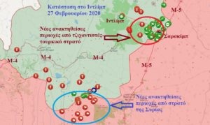 Σημειώνεται ότι, ενώ μένουν μόνο δύο ημέρες από την ημερομηνία που έδωσε ως τελεσίγραφο στο συριακό στρατό να αποσυρθεί πίσω από τη γραμμή που ορίζουν τα 12 παρατηρητήρια του τουρκικού στρατού, ο Ερντογάν δήλωσε χθες ότι ο στρατός του θα επανακαταλάβει τα εδάφη που απελευθέρωσε ο στρατός της Συρίας.