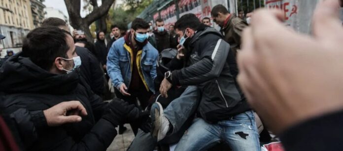 Μάλιστα τα μέλη του ΣΥΡΙΖΑ δέχθηκαν μπουνιές και σπρωξιές από τους φοιτητές. Στο σημείο επικρατούν εικόνες χάους, με φωνές, σπρωξίματα και μάχες σώμα με σώμα.