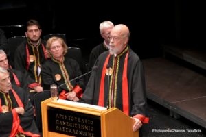 Στο τέλος της ομιλίας του, τόνισε ότι «η Νομική Σχολή του Αριστοτελείου τιμά στο πρόσωπό σας, μεταξύ άλλων, τον τρόπο που κυβερνήσατε, εντός της Ευρώπης, την Κύπρο της οικονομικής κρίσης. Καλύτερα από κάθε άλλον εσείς γνωρίζετε, Κύριε Πρόεδρε, ότι το κυβερνάν δεν είναι μια υπερβατική δραστηριότητα, αλλά μια τέχνη σκληρών επιλογών μέσα στον ιστορικό χρόνο».