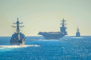Επίσης οι Ηνωμένες Πολιτείες ανακοίνωσαν ότι θα αναπτύξουν την μια ναυτική ομάδα κρούσεως με αεροπλανοφόρο στη Μέση Ανατολή. Αυτό αποφασίστηκε όταν ο πρόεδρος του Ιράν, απείλησε να κλείσει το Στενό του Ορμούζ μετά την απόφαση της κυβέρνησης των ΗΠΑ να επιβάλλουν νέα μέτρα κατά του Ιράν. Δεν έχει ακόμη καταπλεύσει αυτή η ναυτική δύναμη και θα πάρει κάποιο χρόνο για να φτάσει στην περιοχή. Έτσι μπορούμε να υποθέσουμε ότι η απειλή δεν θεωρείται άμεση. Και θα υποθέσουμε ότι το είδος της απειλής που οι ΗΠΑ πιστεύουν ότι προκαλείται από το Ιράν μπορεί να αντιμετωπιστεί από την ναυτική ισχύ που αναπτύσσεται σε όλες τις θαλάσσιες περιοχές.