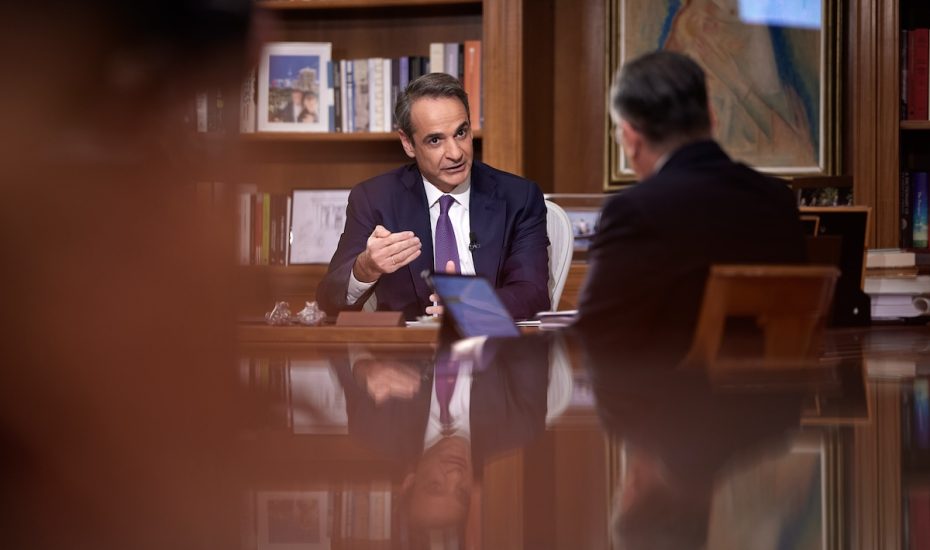 Συνέντευξη του Πρωθυπουργού Κυριάκου Μητσοτάκη στο κεντρικό δελτίο ειδήσεων της ΕΡΤ και στον δημοσιογράφο Γιώργο Κουβαρά. Τετάρτη 10 Ιανουαρίου 2024 (ΔΗΜΗΤΡΗΣ ΠΑΠΑΜΗΤΣΟΣ/ΓΡΑΦΕΙΟ ΤΥΠΟΥ ΠΡΩΘΥΠΟΥΡΓΟΥ/EUROKINISSI)