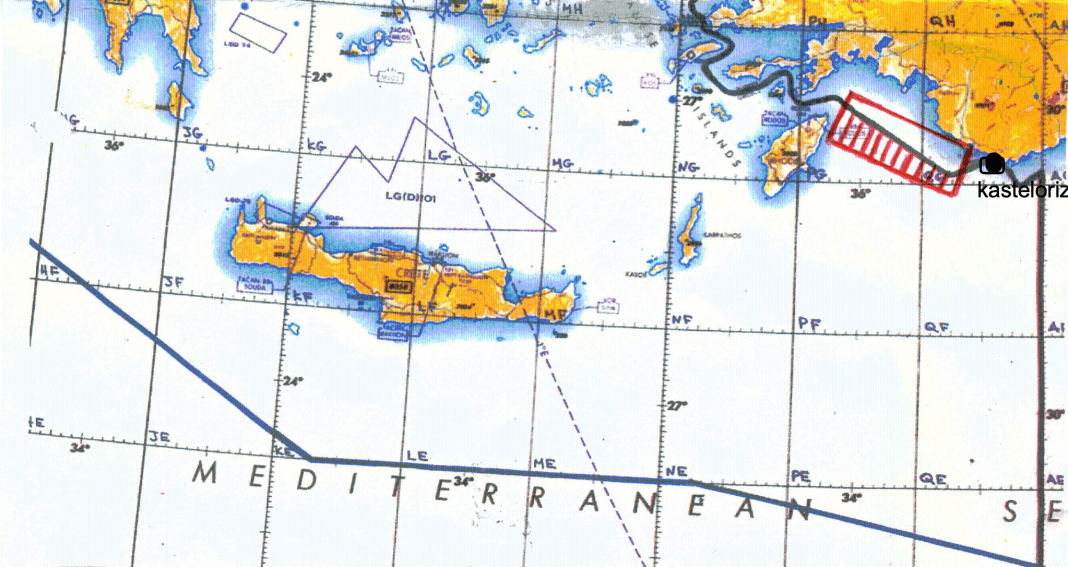 Η περιοχή στο χάρτη αποκόπτει κάθε επικοινωνία Ρόδου- Μεγίστης ακόμα και γιαμεταφορά ασθενών με πλοίο , ελικόπτεροή αεροπλάνο, διότι τα τουρκικά πυρά είναι μέχρι και τα 30.000 πόδια, ενώ οι αεροδιάδρομοι της εναέριας κυκλοφορίας από την Ευρώπη προς Μέση Ανατολή και αντίστροφα αχρηστεύονται λόγω των τουρκικών πυρών μέχρι τα 30.000 πόδια.