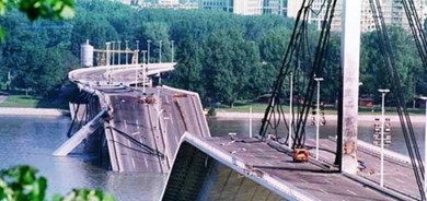 Καταστραμμένη γέφυρα – μία από τις 45 ποτάμιες και 28 σιδηροδρομικές- στη Σερβία: Από δω πέρασε το ΝΑΤΟ, το 1999, παράνομα, χωρίς εντολή του Συμβουλίου Ασφαλείας του ΟΗΕ. Σήμερα οι ΗΠΑ θεωρούν «ώριμο» το κλίμα το ΝΑΤΟ να ενεργεί αυτοβούλως και σε κάθε γωνιά της Γης.
