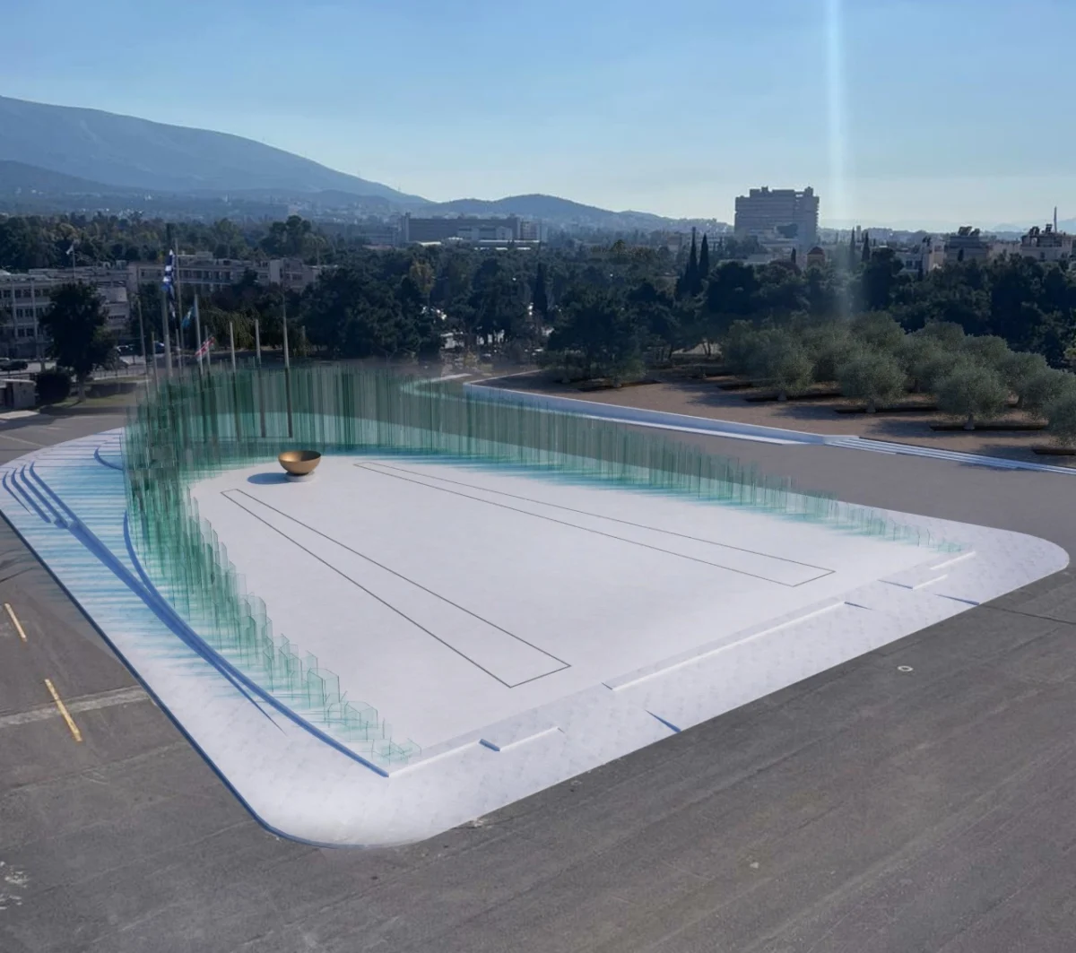 Ένα σύγχρονο λεπτεπίλεπτο μνημείο (κεντρική φωτογραφία) που θα σχηματίζεται ένας ανοιχτοπράσινος κυκλικός λαβύρινθος από ανοιχτοπράσινες γυάλινες στήλες πάνω στις οποίες θα είναι χαραγμένα τα ονόματα των 121.692 πεσόντων , τα οποία την νύχτα θα φωσφορίζουν από το φως που θα αναδύεται από την λευκή βάση του μνημείου αλλά και από το λαμπύρισμα της φλόγας που θα βγαίνει από την εστία που θα τοποθετηθεί στο κέντρο της βάσης του μνημείου και θα είναι αναμμένη όλο το εικοσιτετράωρο.