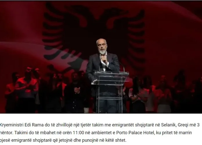 Η τελευταία συνάντηση του Ράμα με τους Αλβανούς της Ελλάδας πραγματοποιήθηκε στις 14 Μαΐου στην Αθήνα, ακριβώς ένα χρόνο μετά τη σύλληψη του πρώην δημάρχου της Χειμάρρας Φρέντη Μπελέρη για εξαγορά ψήφων.