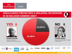 Στις 20 Ιουνίου 2013, το περιοδικό «THE ECONOMIST» διοργάνωσε δημόσια συζήτηση-αντιπαράθεση (debate) μεταξύ του καθηγητή κ. Θ. Καρυώτη και του δικαστή στην Χάγη κ. Χ. Ροζάκη.