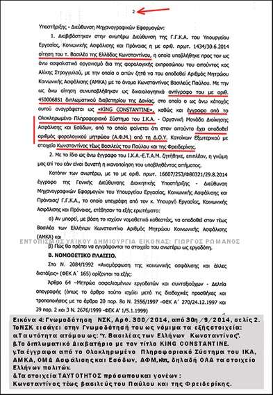 β3. Όλα τα δημόσια έγγραφα του Βασιλέως Κωνσταντίνου Β΄ που προέρχονται από το Ολοκληρωμένο Πληροφοριακό Σύστημα του ΙΚΑ, ΑΜΚΑ, ΟΜΔ Ασφάλισης και Εσόδων, ΑΦΜ, κλπ. Δηλαδή ΟΛΑ τα κρατικά στοιχεία των Ελλήνων πολιτών, και,