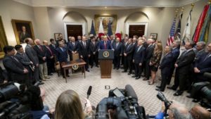 Ο πρόεδρος των ΗΠΑ, Ντόναλντ Τραμπ ομιλεί σε παρεβρισκομένους στο Roosevelt Room του Λευκού Οίκου. Official White House Photo by Tia Dufour Μία τρύπα μέσα στο νερό…