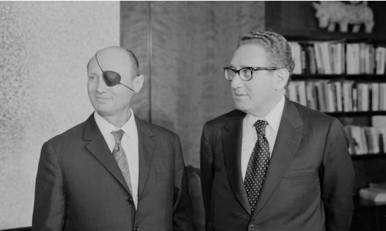 Ο Moshe Dayan, τότε υπουργός Άμυνας του Ισραήλ, με τον Henry Kissinger, σύμβουλο εθνικής ασφάλειας των ΗΠΑ, το 1974. Φωτογραφία: PhotoQuest/Getty Images