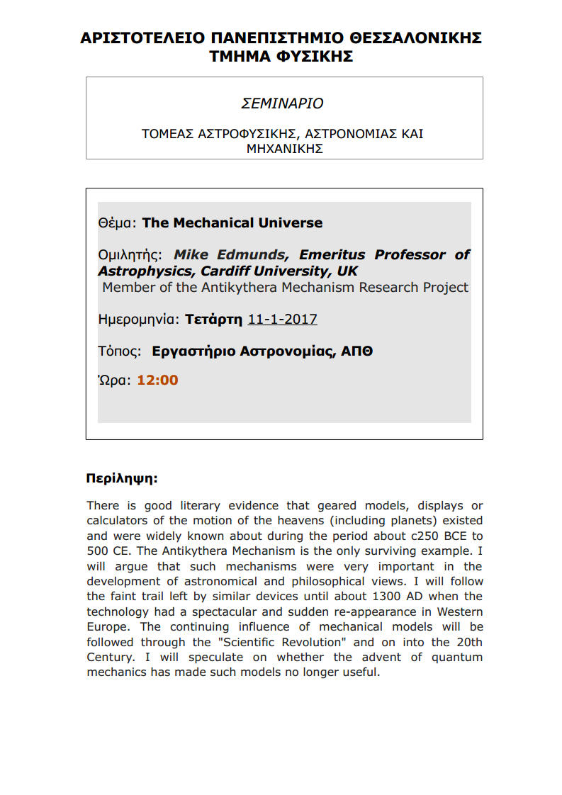 Άκρως ενδιαφέρουσα διάλεξη για το μηχανισμό των Αντικυθήρων.
