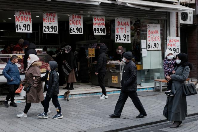 Μόνο τον Δεκέμβριο, οι τιμές καταναλωτή αυξήθηκαν περισσότερο από 13% στην Τουρκία: εδώ, ένα κρεοπωλείο, στην Κωνσταντινούπολη, στις 13 Ιανουαρίου 2022. MURAD SEZER / REUTERS