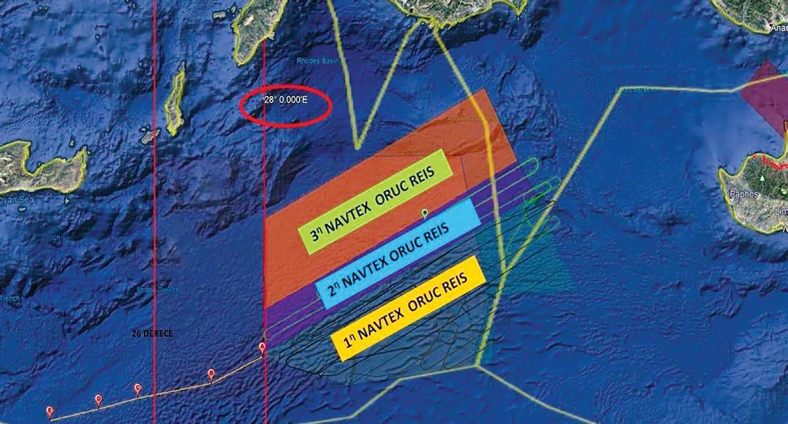 Προσπάθεια οριοθέτησης ΑΟΖ με άλλες χώρες εις βάρος συμφερόντων της Χώρας μας και της Κυπριακής Δημοκρατίας.