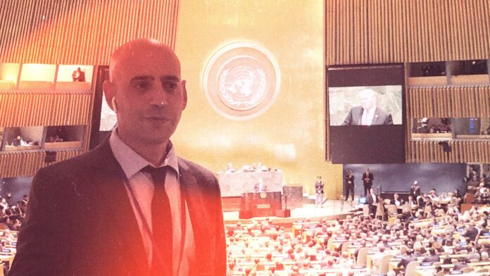 *Στη φωτογραφία ο Ισραηλινός αναλυτής Σάι Γκαλ στη Γενική Συνέλευση του ΟΗΕ κατά τη διάρκεια της ομιλίας του προέδρου των ΗΠΑ Ντόναλντ Τραμπ