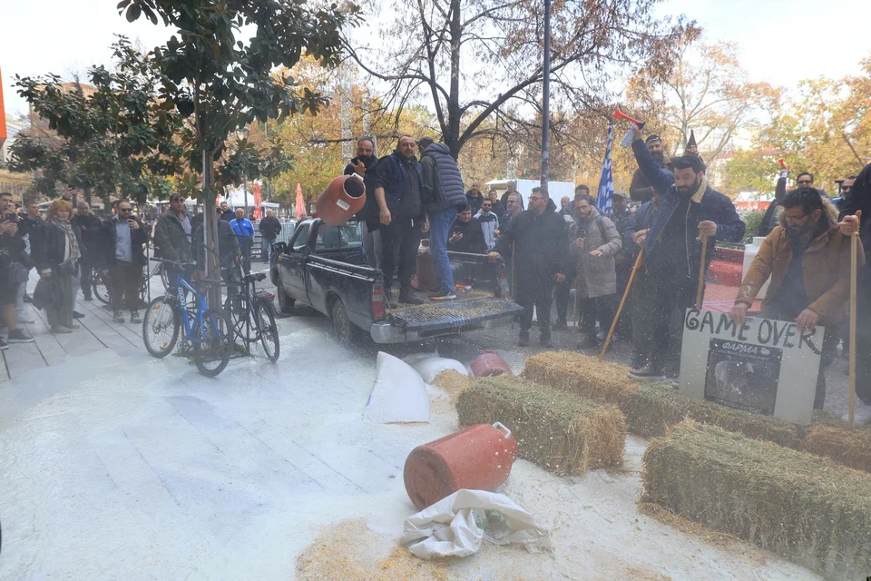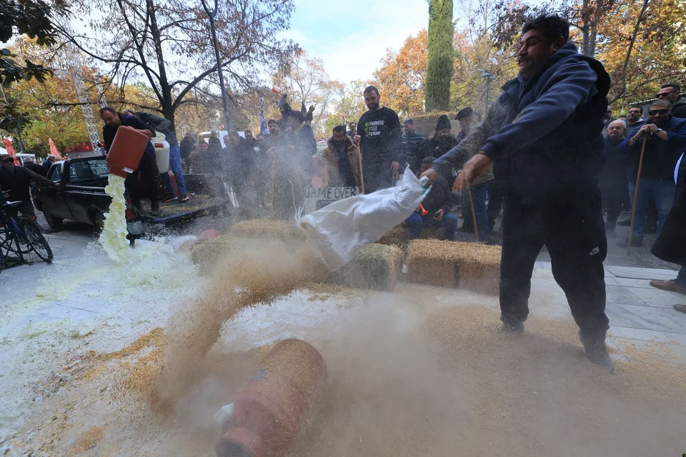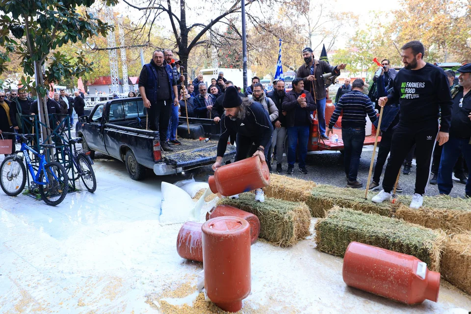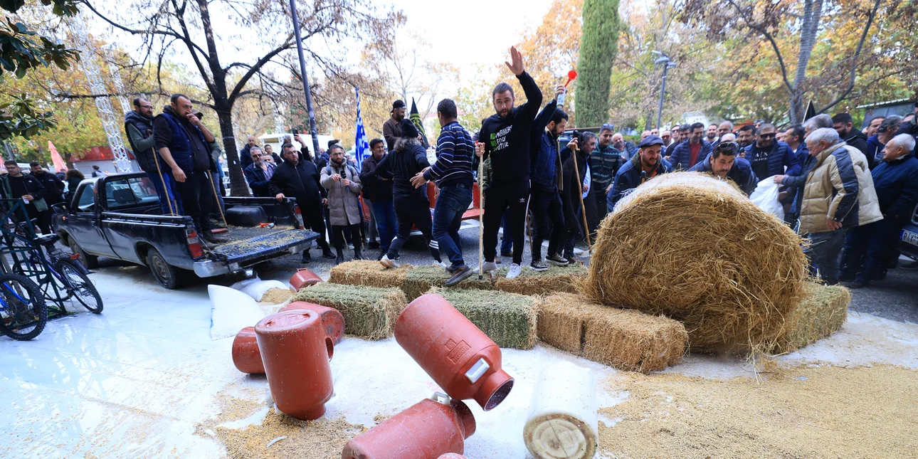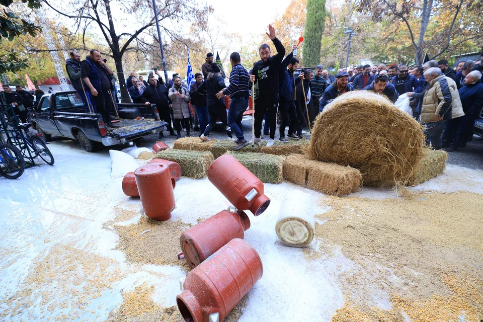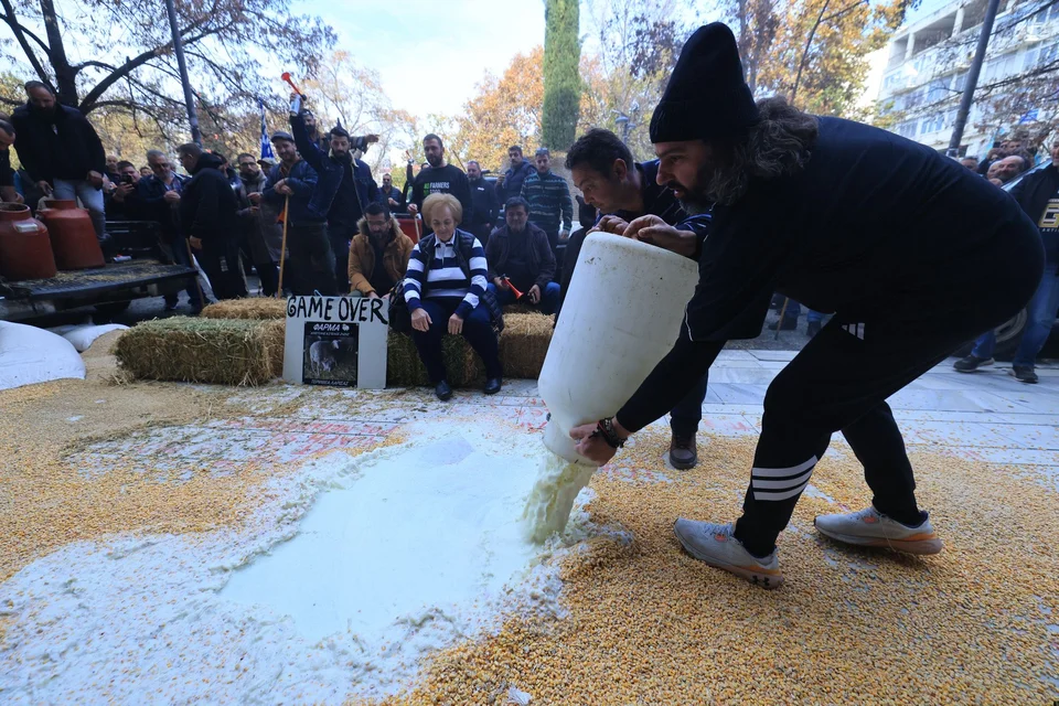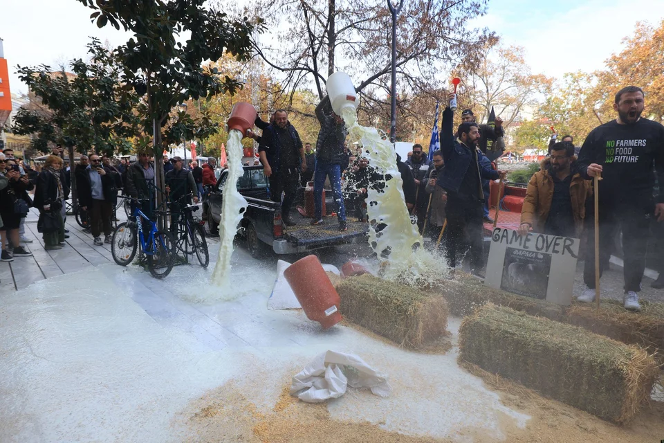 Κτηνοτρόφοι στη Λάρισα χύνουν γάλατα, πετούν σανό και άλλα γεωργικά προϊόντα / IntimeNews