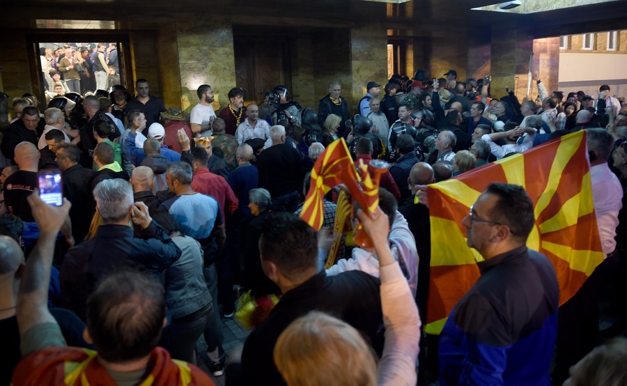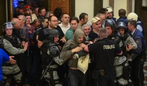 Δραματική τροπή λαμβάνουν οι πολιτικές εξελίξεις στην πΓΔΜ καθώς εκατοντάδες διαδηλωτές, οπαδοί του VMRO-DPMNE του Νίκολα Γκρούεφσκι, εισέβαλαν την Πέμπτη στο κοινοβούλιο και επιτέθηκαν σε βουλευτές του Σοσιαλδημοκρατικού κόμματος και των κομμάτων της αλβανικής μειονότητας, οι οποίοι εκείνη την ώρα εξέλεγαν πρόεδρο του Κοινοβουλίου.