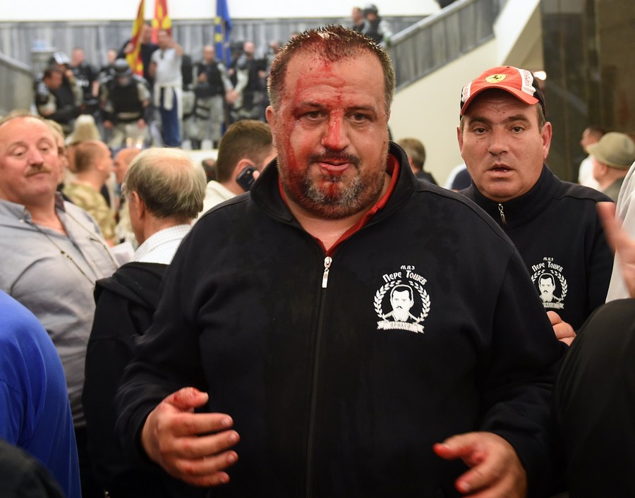 Ο ηγέτης του Σοσιαλδημοκρατικού Κόμματος Ζόραν Ζάεφ γρονθοκοπήθηκε και τραυματίστηκε ελαφρά μετά την εισβολή των διαδηλωτών στην αίθουσα.