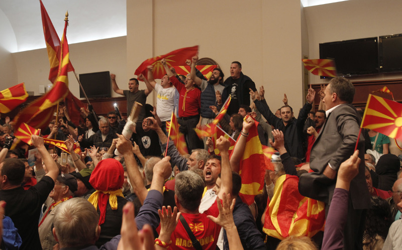Αυτόπτης μάρτυρας είπε στο πρακτορείο ειδήσεων Reuters ότι το πλήθος που είχε συγκεντρωθεί απ’ έξω, εξοργισμένο από το αποτέλεσμα της ψηφοφορίας, μπήκε στην κεντρική αίθουσα του κοινοβουλίου, στα Σκόπια.