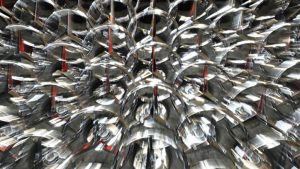 A zoomed-in photo of Mercedes stars being ready to be attached during the production of ‘S-Class’ Mercedes Benz cars at an assembly line at the car manufacturer Daimler in Sindelfingen, Germany. EPA, FRANZISKA KRAUFMANN MARCH 12, 2018