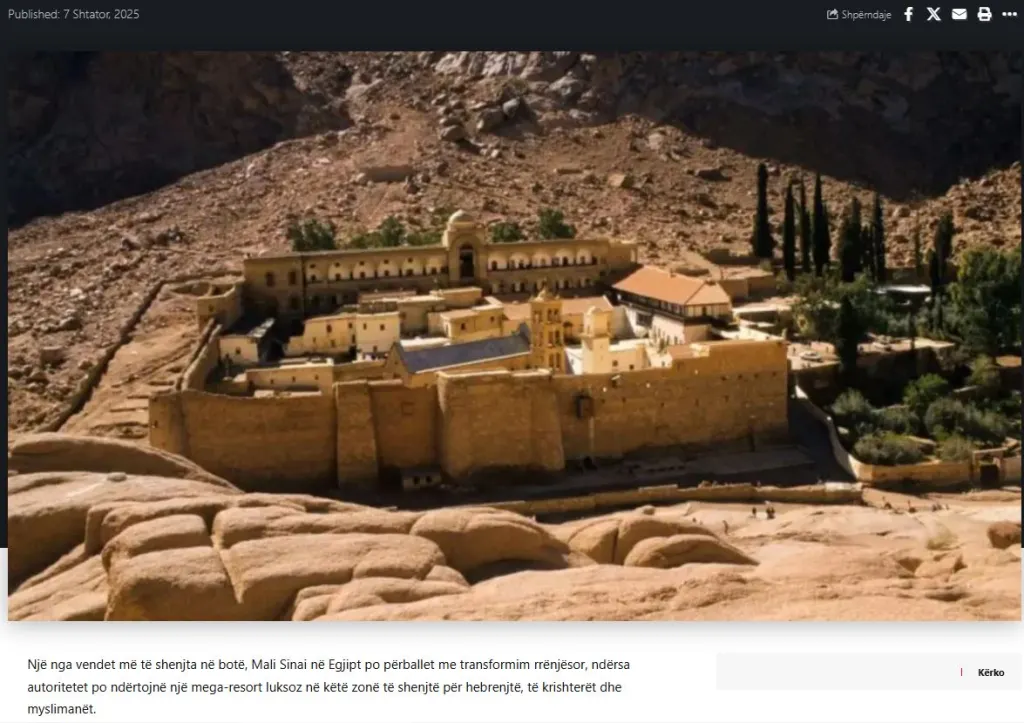 Ένα από τα ιερότερα μέρη στον κόσμο, το Όρος Σινά στην Αίγυπτο, αντιμετωπίζει μια ριζική μεταμόρφωση, καθώς οι αρχές κατασκευάζουν ένα πολυτελές μέγα-θέρετρο σε αυτήν την περιοχή, ιερή για Εβραίους, Χριστιανούς και Μουσουλμάνους.
