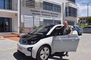 Ο Διευθυντής του ΙΜΕΤ/ΕΚΕΤΑ και Πρόεδρος της Οργανωτικής Επιτροπής του συνεδρίου, Δρ. Άγγελος Μπεκιάρης με ένα από τα ηλεκτρικά οχήματα του Ινστιτούτου.