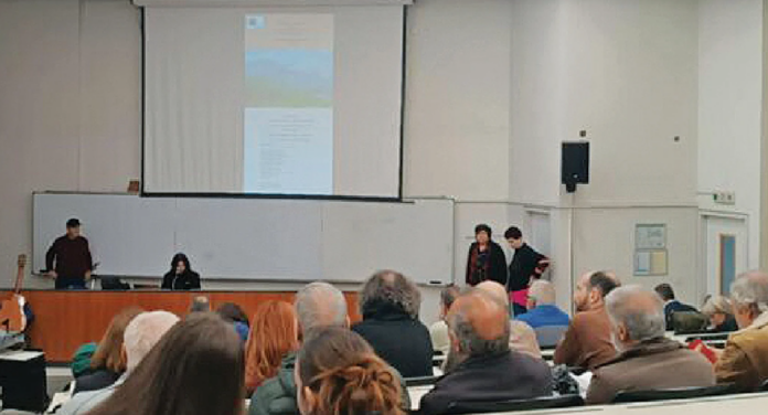 Ως εκπρόσωποι του υπό σύσταση σωματείου «Κέντρον Μακεδονικής γλώσσης εν Ελλάδι» (εννοώντας τα αρχαία ελληνικά) παρακολούθησαν την εκδήλωση, προκειμένου να παρέμβουν, εάν χρειαστεί. Επίσης, η «κυριακάτικη δημοκρατία» παρακολούθησε διακριτικά τη διαδικασία και αποτύπωσε τις προθέσεις και τα κίνητρα των διοργανωτών. Με την είσοδό μας στην «αίθουσα 2» του ΠΑ.ΜΑΚ., που τελούσε υπό κατάληψη (καθώς η αίθουσα 12 τελικά δεν παραχωρήθηκε από τον πρύτανη και παρέμεινε κλειδωμένη), διαπιστώσαμε ότι θα γίνει μια εντελώς διαφορετική εργασία σε σχέση με αυτό που είχε ανακοινωθεί στην πρόσκληση.
