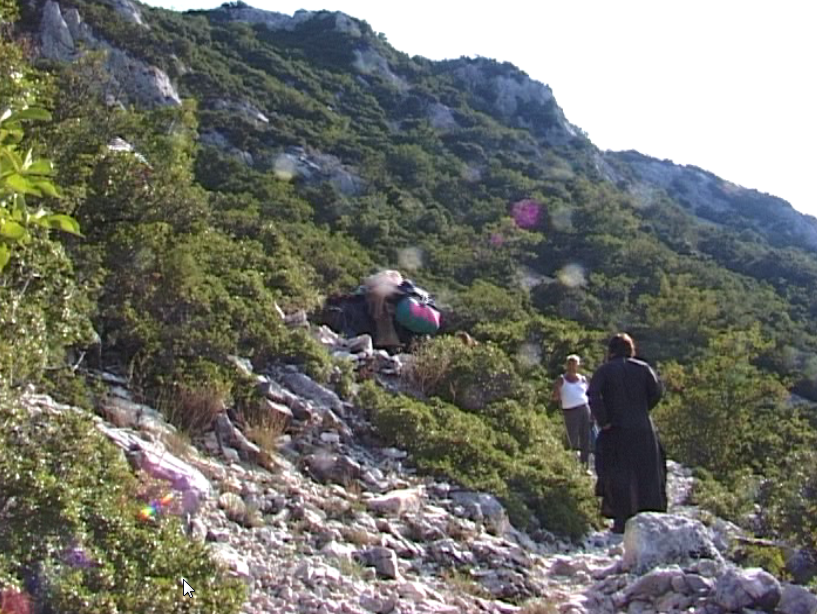 Απο τη μια έβλεπα το ύψος στο οποίο βρισκόταν η Σκήτη (600 μέτρα κάθετα, χωρίς καμιά κλίση) και απογοητευόμουν, απο την άλλη έβλεπα τον Τασσιά και έπαιρνα θάρρος. Ο πατέρας Τασσιάς ήταν ογκώδης στις διαστάσεις του. Μέχρι που έφεραν ένα γαϊδουράκι στο οποίο ανέβηκε ο πατέρας Τασσιάς και η ανησυχία για το ύψος άρχισε να με ξανακαταλαμβάνει.