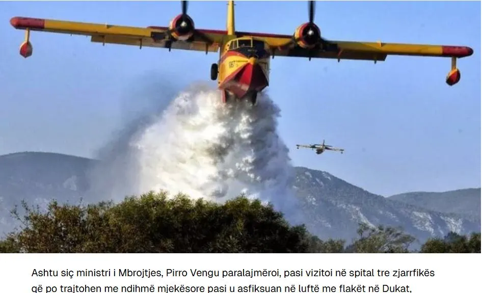 Στο πλαίσιο αυτού του αιτήματος βοήθειας που υπέβαλε η Αλβανία, 2 αεροσκάφη Canadair έφτασαν στη χώρα μας από την Ελλάδα, με το ελληνικό κράτος να είναι το πρώτο που έσπευσε να μας βοηθήσει στην προσπάθεια κατάσβεσης των φλογών.