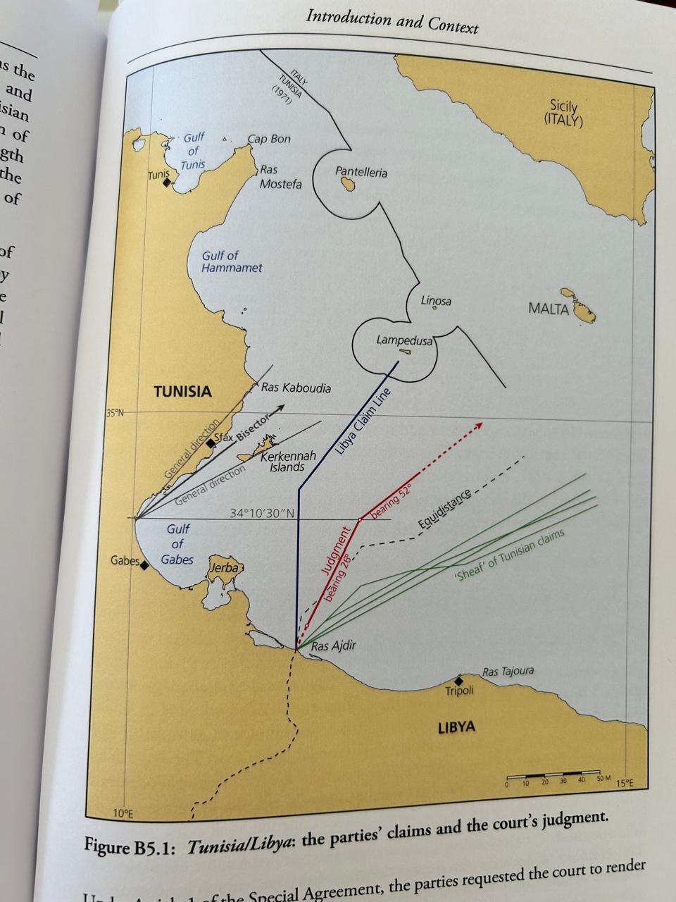 Το 1982, στη διαφορά με την Τυνησία, το Δικαστήριο έκρινε ότι τα νησιά που ανήκουν στη Τυνησία και είναι, μάλιστα, παράλληλα των ακτών της, διαθέτουν υφαλοκρηπίδα και δικαιώματα. Ουσιαστικά, υποχρέωσε την Λιβύη να αποδεχθεί την θέση αυτή.