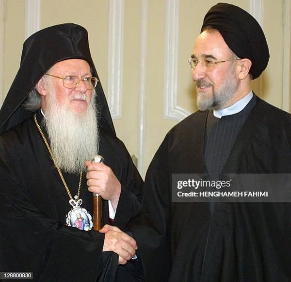 Η 2η φωτογραφία είναι από τη συνάντηση του τότε προέδρου Χαταμί με τον οικουμενικό πατριάρχη Βαρθολομαίο, όταν ο τελευταίος επισκέφθηκε το Ιράν.