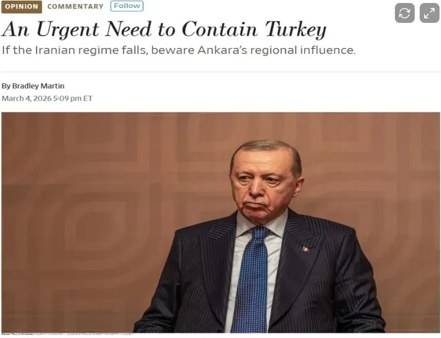 Η Wall Street Journal δημοσίευσε την περασμένη εβδομάδα ένα άρθρο γνώμης με τίτλο « Επείγουσα Ανάγκη για τον περιορισμό της Τουρκίας », το οποίο προειδοποιούσε ότι «Εάν το ιρανικό καθεστώς πέσει, προσέξτε την περιφερειακή επιρροή της Άγκυρας».