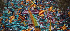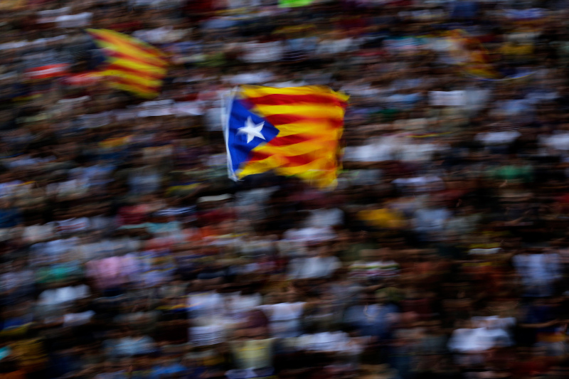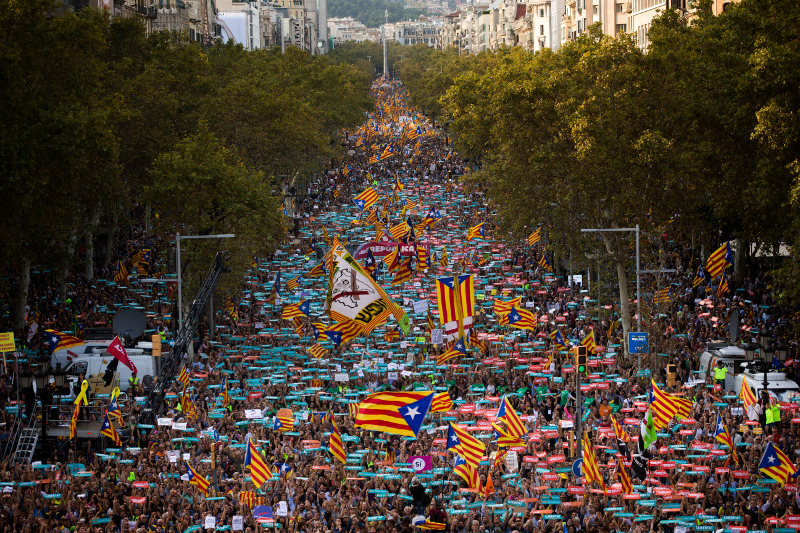 «Ελευθερία! Ανεξαρτησία!» φώναζαν χιλιάδες εκ των συγκεντρωμένων, κουνώντας μανιασμένα σημαίες της Καταλονίας.