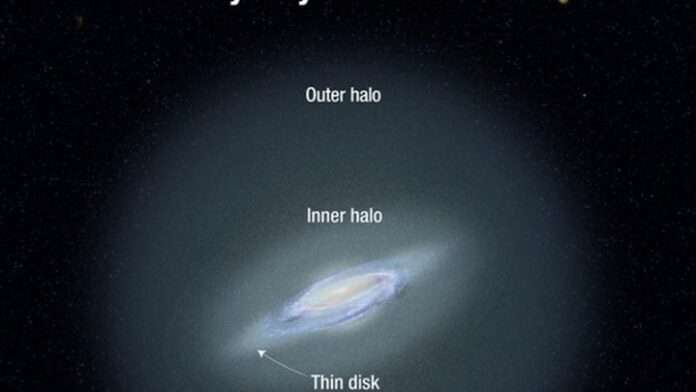 Οι αστρονόμοι τόνισαν ότι η περιβάλλουσα άλως που αποτελείται από διάφορα διάσπαρτα άστρα, είναι πολύ μεγαλύτερη από τον κυρίως δίσκο του γαλαξία μας, ο οποίος δεν ξεπερνά σε διάμετρο τα 100.000 έτη φωτός. Το ηλιακό μας σύστημα με τη Γη βρίσκεται σε έναν από τους σπειροειδείς βραχίονες του δίσκου. Στη μέση του δίσκου βρίσκεται ένα κεντρικό ‘εξόγκωμα’ και γύρω από αυτό είναι η άλως που περιέχει τα αρχαιότερα άστρα του γαλαξία μας και η οποία εκτείνεται σε απόσταση εκατοντάδων χιλιάδων χιλιομέτρων προς κάθε κατεύθυνση.