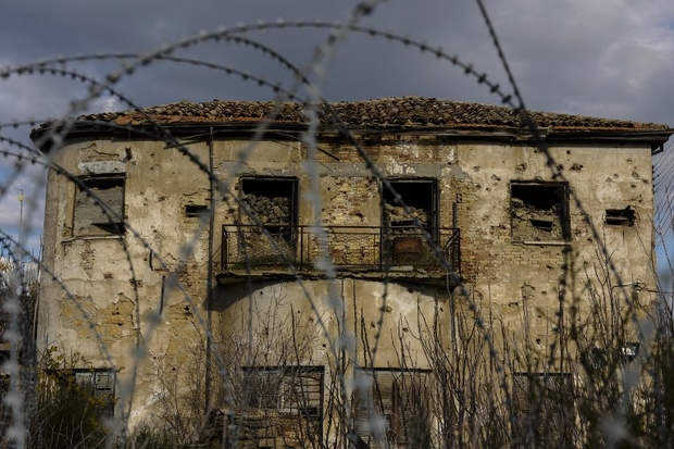 An abandoned building is seen in the green line, a UN controlled buffer zone, separating the divided Cypriot capital of Nicosia, known as Lefkosia to Turkish-Cypriots (AFP)