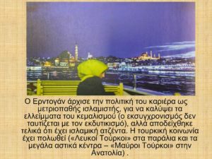 Το καθεστώς   Ερντογάν που  επαινούνταν από τη Δύση  ως  φάρος εκδημοκρατισμού και οικονομικής ανάπτυξης  χρησιμοποίησε υπέρμετρη  βία για να διαλύσει μια περιβαλλοντική   διαμαρτυρία  για την καταστροφή του πάρκου Γκεζί, στη πλατεία Τaksim.   Οι ταραχές απλώθηκαν και σε άλλες πόλεις  ως διαμαρτυρία  για την επαυξανόμενη αυταρχικότητα του καθεστώτος. Με  την καταστροφή   του πάρκου ο Ερντογάν ήθελε να κατασκευάσει  τζαμί. Υπήρχε  και ένας συμβολισμός. Από το χώρο αυτό άρχισε τον Απρίλιο του 1909 η αντεπανάσταση του   Αβδούλ Χαμίτ Β΄ κατά των Νεοτούρκων.  Ο σουλτάνος Αβδούλ Χαμίτ  Β΄ με την πανισλαμική ιδεολογία είναι το πρότυπο του κυβερνώντος Κόμματος Δικαιοσύνης  και Ανάπτυξης.  Άλλωστε η πλατεία Taksim  ήταν συνδεδεμένη  με τις αιματηρές απεργίες της εργατικής πρωτομαγιάς. Μετά το Γκεζί τίποτα δεν ήταν το ίδιο.