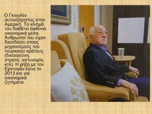 Ο Γκιουλέν  στήριζε ισλαμικά κόμματα  και  μέσω φροντιστηρίων για τις εξετάσεις στα Πανεπιστήμια προπαρασκεύαζε  μελλοντικά  στελέχη  για νευραλγικούς τομείς στην αστυνομία και τη δικαιοσύνη , αρχικά απαρατήρητα,  ώστε να δράσουν   την κατάλληλη στιγμή. Δεν συγκρούστηκε μετωπικά   με τον  στρατό  μετά το 1980. Όταν ο στρατός  υποψιάστηκε τον πραγματικό  του ρόλο, ο Γκιουλέν  έφυγε  από την Τουρκία στην Αμερική   το 1999. Αλλά δεν σταμάτησε την δραστηριότητά του μέσω των πολλαπλών δικτύων  για  έναν ‘’ ισλαμο- τουρκικό εκσυχρονισμό’’. Γκιουλέν και Ερντογάν  αρχικά συνεργάστηκαν κατά του  κεμαλικού κατεστημένου. Ο αγαπημένος ποιητής του Ερντογάν  ήταν τώρα ο Yunus Emre,  εκπρόσωπος  του σουφισμού,  που παρουσίαζε το Ισλάμ  ως θρησκεία  ειρήνης.