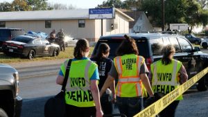 Texas Department of Public Safety troopers and emergency workers outside the First Baptist Church in Sutherland Springs, Texas, USA, 05 November 2017. Reports indicate that a single gunman entered the church and started shooting and was now dead along with reportedly more than 20 victims. EPA, R. TOMAS GONZALEZ NOVEMBER 5, 2017