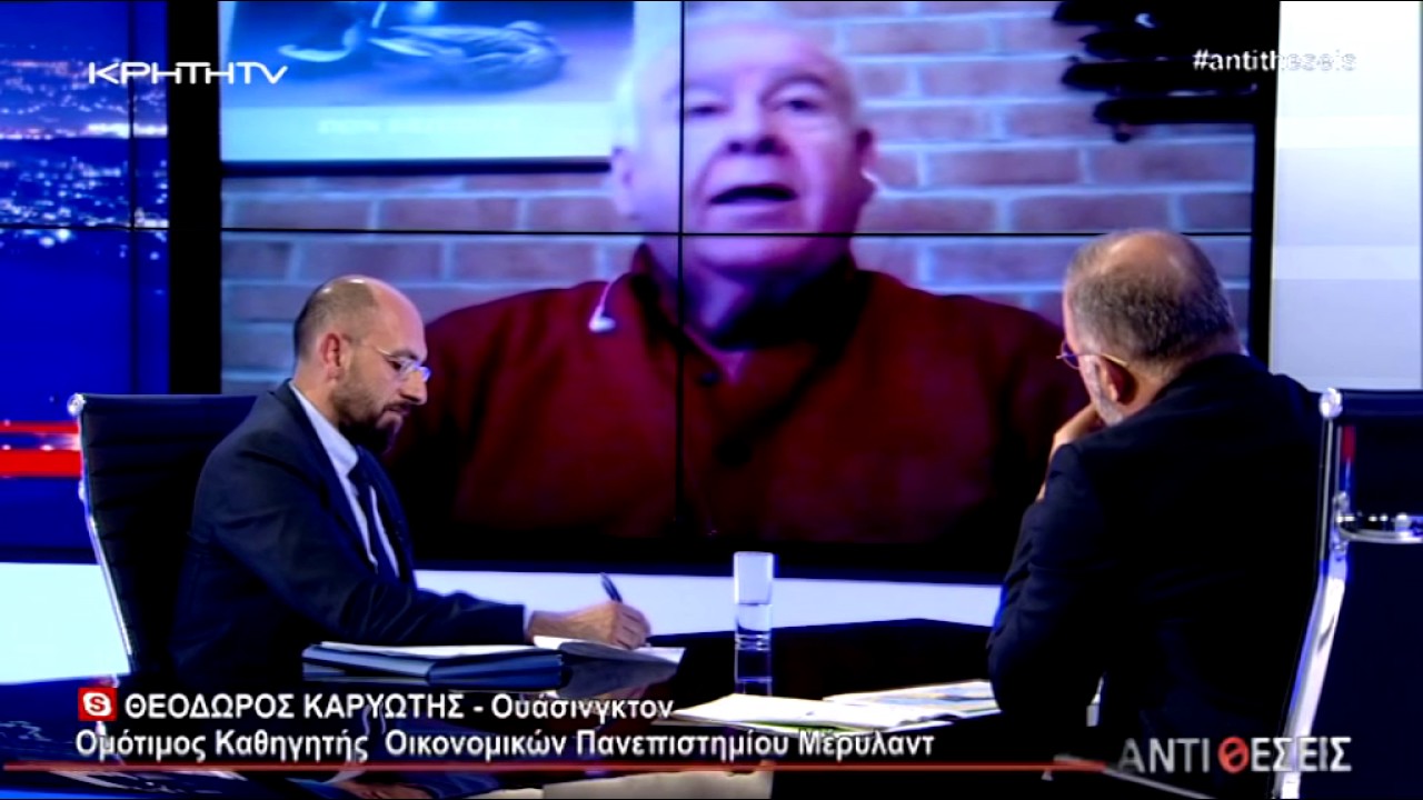 Συνέντευξη με τον ομότιμο καθηγητή πολιτικής οικονομίας στο πανεπιστημιακό σύστημα Maryland των ΗΠΑ Θεοδωρο Καρυώτη που θεωρείται ο ” πατέρας” της Ελληνικής ΑΟΖ. Στην εκπομπή παρεμβαίνει ο καθηγητής Διεθνούς Δικαίου στη Νομική Σχολή του πανεπιστημίου Πάφου Θωμάς Παπαναστασίου