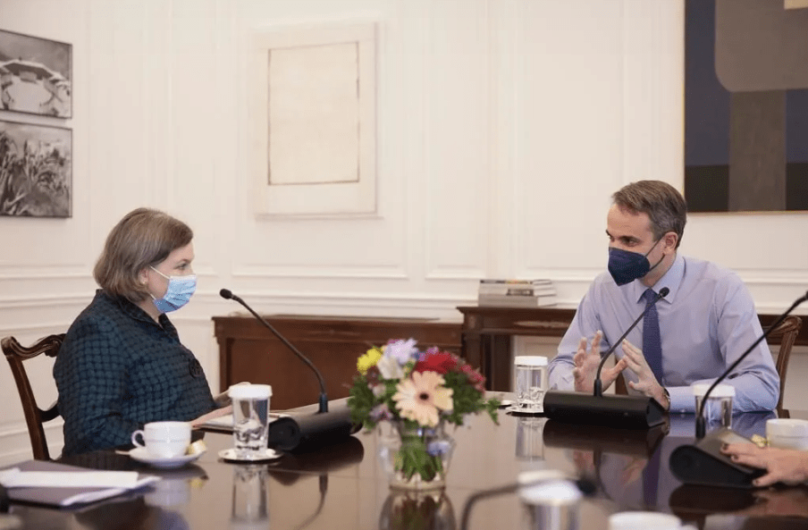 Ο πρωθυπουργός Κυριάκος Μητσοτάκης με την υφυπουργό Εξωτερικών των ΗΠΑ, Βικτόρια Νούλαντ στο Μέγαρο Μαξίμου. Φωτογραφία via Under Secretary Victoria Nuland, @UnderSecStateP