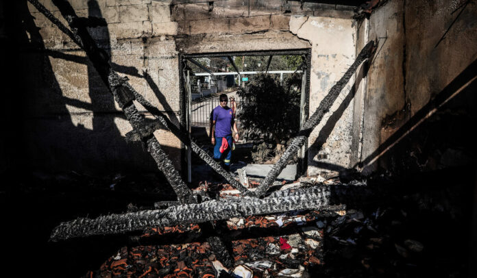 Σκηνές απόλυτης καταστροφής καταγράφονται στο Κρυονέρι μετά το πέρασμα της πυρκαγιάς, αφήνοντας πίσω της καμένα σπίτια, κατεστραμμένες περιουσίες και ένα τοπίο σκεπασμένο από στάχτη. Η επόμενη μέρα βρίσκει τους κατοίκους σε απόγνωση, μετρώντας τις ζημιές και προσπαθώντας να περισώσουν ό,τι απέμεινε.