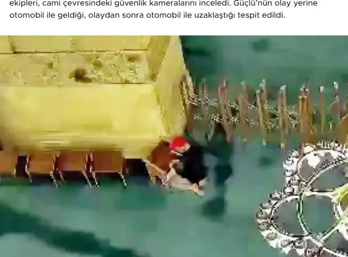 Ο Γκιουτσλού πήρε τη Βίβλο από μπροστά από τη Βιβλιοθήκη Μαχμούτ Β’ στο τζαμί, πήγε πίσω από το αναλόγιο, έσκισε τις σελίδες της Βίβλου και άρχισε να την καίει. Σε αυτό το σημείο, το χαλί του τζαμιού έπιασε φωτιά.
