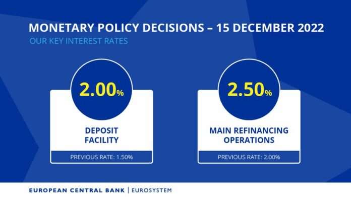 Την περασμένη εβδομάδα η Αμερικανική Ομοσπονδιακή Τράπεζα – Fed και η Ευρωπαϊκή Κεντρική Τράπεζα – ΕΚΤ αύξησαν τα επιτόκιά τους κατά 0,50% (50 μονάδες βάσης). Έτσι το βασικό επιτόκιο της Fed ανήλθε στο 4,50% και αυτό της ΕΚΤ στο 2,50%. Από τις αρχές του 2022 η Fed έχει αυξήσει το επιτόκιό της επτά φορές και η ΕΚΤ τέσσερεις φορές. Αναμένονται νέες αυξήσεις το 2023.
