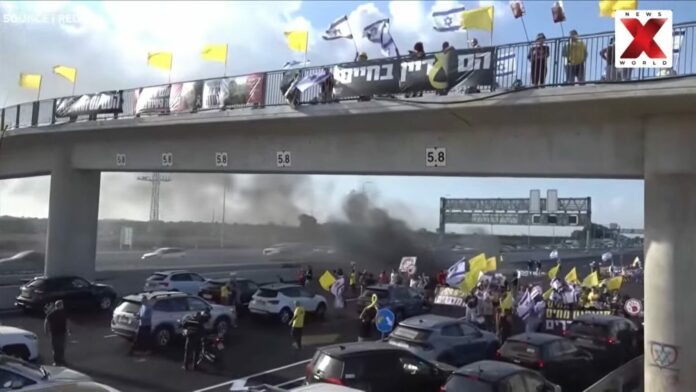 Εκατοντάδες διαδηλωτές απέκλεισαν την κυκλοφορία κοντά στο Τελ Αβίβ νωρίς σήμερα το πρωί ζητώντας να τεθεί τέλος στον πόλεμο στη Γάζα και να απελευθερωθούν οι όμηροι, ενόψει μιας συνεδρίασης του υπουργικού συμβουλίου ασφαλείας που προβλέπεται για το βράδυ.