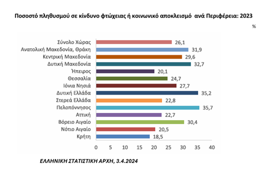Ένας οικονομικός δείκτης, τον οποίο δεν συνηθίζουμε να συζητάμε, αν και μας δίνει μια σημαντική παράμετρο οικονομικής και κοινωνικής ευημερίας, είναι το ποσοστό του πληθυσμού σε κίνδυνο φτώχειας ή κοινωνικού αποκλεισμού.