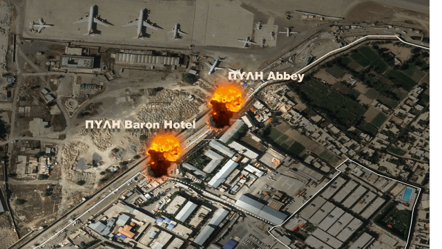 Δορυφορική φωτογραφία.Καμπούλ, Διεθνές Αεροδρόμιο Χαμίντ Καρζάϊ. Γραφική αναπαράσταση της τρομοκρατικής επίθεσης την 26 Αυγούστου 2021.