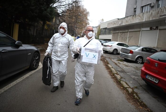 File photo Υγειονομικοί μεταφέρουν κάλπη σε ασθενείς από κορωναϊό ώστε να μπορέσουν να ψηφίσουν EPA/VASSIL DONEV μέσω ΚΥΠΕ