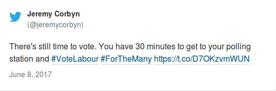 Μισή ώρα πριν κλείσουν οι κάλπες ο ηγέτης των Εργατικών Τζέρεμι Κόρμπιν απηύθυνε έκκληση στους ψηφοφόρους για να πάνε να ψηφίσουν