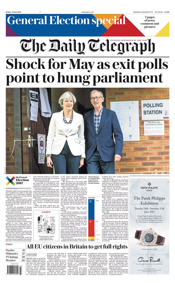 Η έκπληξη είναι τεράστια, τα βρετανικά ΜΜΕ μιλούν για κατάρρευση της αξιοπιστίας της Μέι, η οποία περίμενε θρίαμβο και τώρα της λείπουν 12 έδρες (σύμφωνα με το exit poll) για την πλειοψηφία. Οι Βρετανοί, όπως φάνηκε απέρριψαν όχι μόνο την πολιτική σκληρή λιτότητας αλλά και το σκληρό Brexit και τα πράγματα στη Βρετανία τίθενται σε νέα βάση από αύριο.