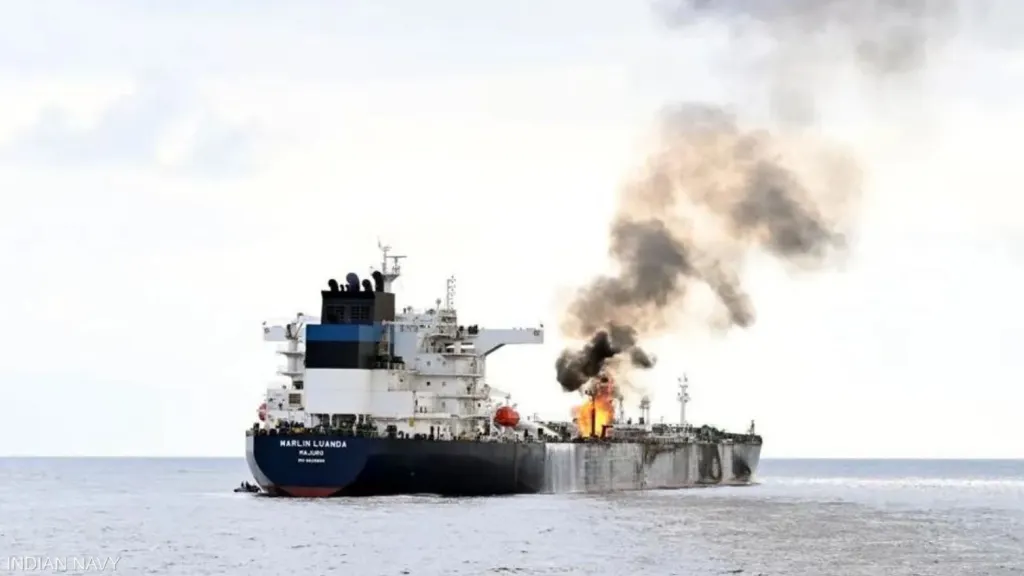 Φωτό από άλλο παρόμοιο περιστατικό με βρετανικό πλοίου που δέχτηκε επίθεση πέρυσι