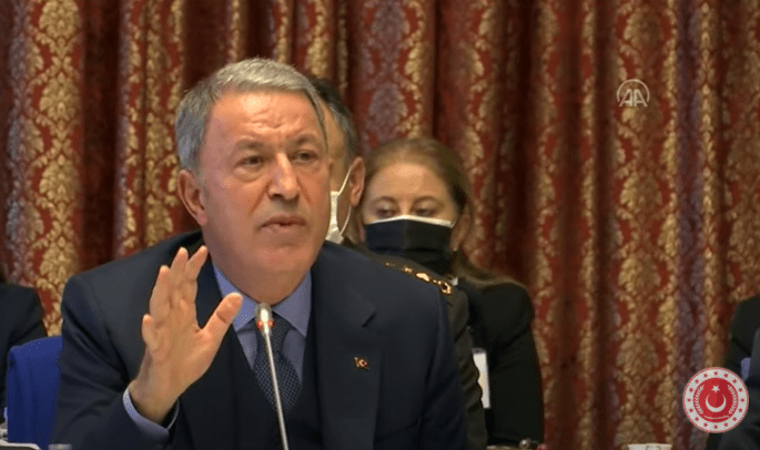 Ο Τούρκος υπουργός Άμυνας επανέλαβε πως η χώρα του θα υπερασπιστεί τα συμφέροντά της στο Αιγαίο Πέλαγος και στην Ανατολική Μεσόγειο, ισχυρίστηκε πως οι συμμαχίες και οι εξοπλισμοί της Ελλάδας βλάπτουν την αλληλεγγύη στο ΝΑΤΟ και πως η χώρα μας κακομεταχειρίζεται τους μετανάστες που επιχειρούν να εισέλθουν στα εθνικά θαλάσσια χωρικά ύδατα. Μετά τις απειλές και τις προειδοποιήσεις ωστόσο, έτεινε χέρι φιλίας προς την Ελλάδα ζητώντας δίκαιη «μοιρασιά» στο θαλάσσιο πλούτο της περιοχής.